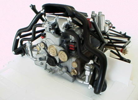 で、エンジン部分は、その後結構工作が進んだ。塗装はタミヤのキットの指示を参考にしている。下の左が2001年7月16日の状態。