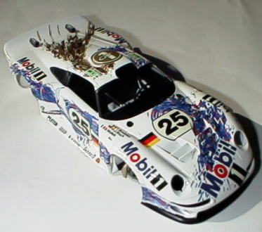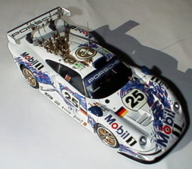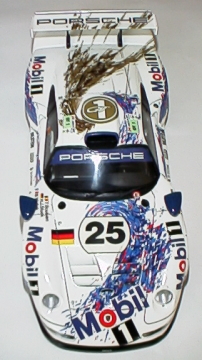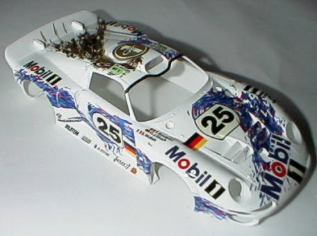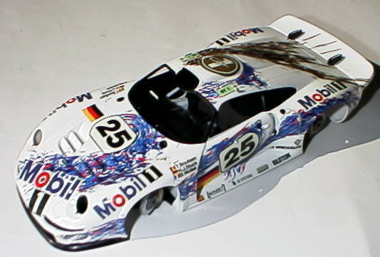 レベルの911−GT1EVOを製作する時に、タミヤの組み立て説明書の塗装指示を参考にした。 そのうち、ボディーの塗装をしておこうと思い、結局デカール貼りまで完了させた。 見た目よりも柔らかいデカールで、車体によくフィットしている。