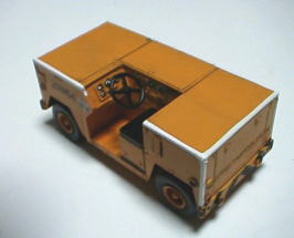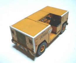 米海軍の基地でよく見かける、外部電源車である。以前厚木基地のオープン・ハウス(現在のエア・ショーと違い殆ど地上展示のみ)で撮影した写真が1枚あったので、参考にした。それによると前部のリフレクターは赤ではなく、オレンジ色に見える。また再現jはしていないが、厚木の車両は座席前の床はサイドも含めて黒になっていて、滑り止めのゴムが貼ってあるようにも見える。