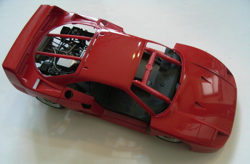 タミヤのフェラーリ F40はエンジンや内装はかなり工作が終わっている状態だった。ただしボディ塗装はされていなかったので、モデラーズのフェラーリレッドを天気のいい日に屋上で塗装。