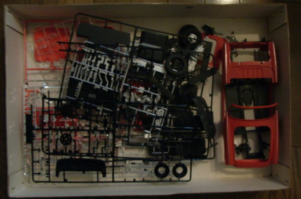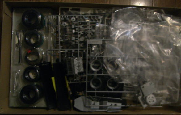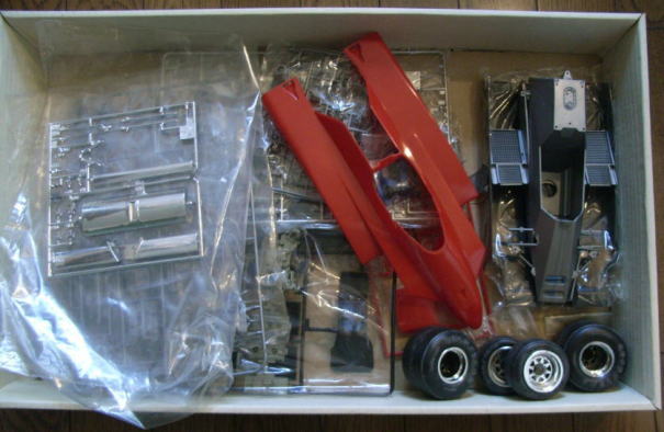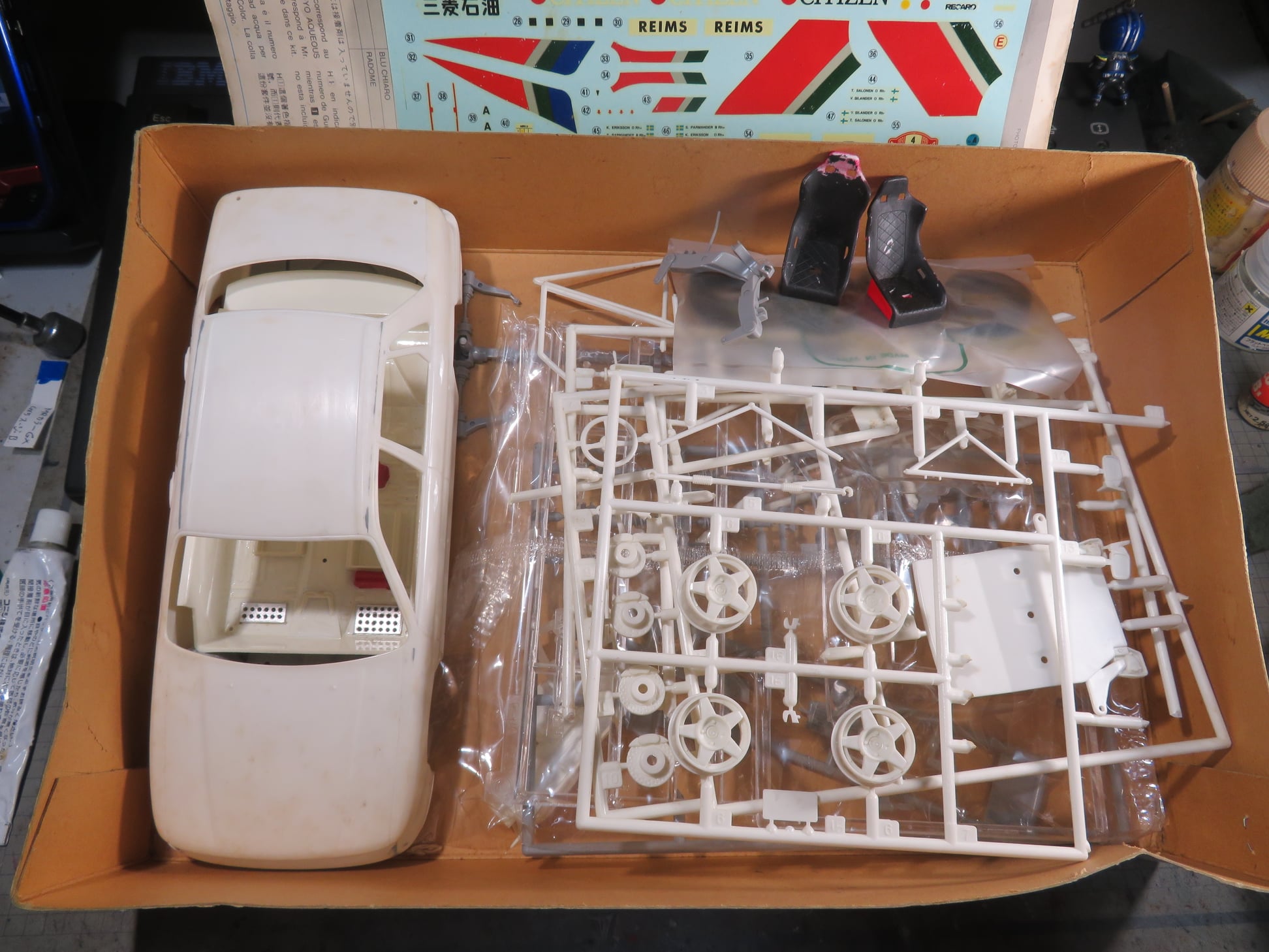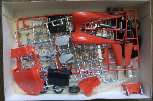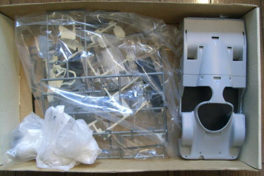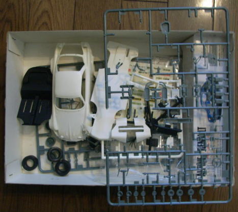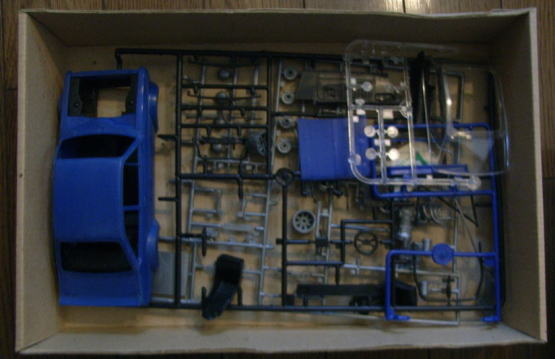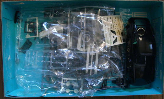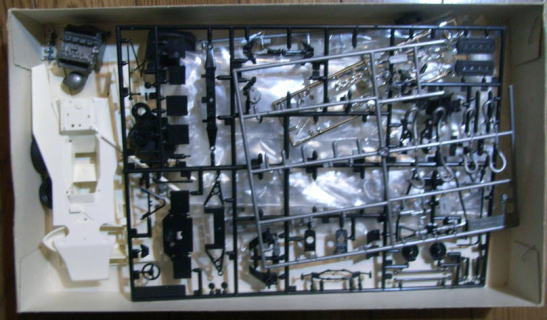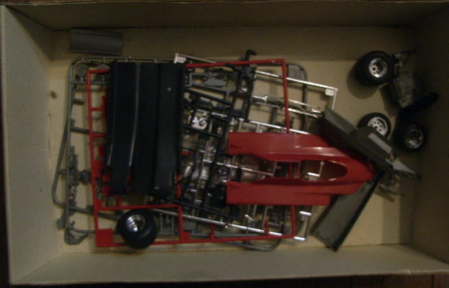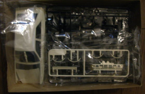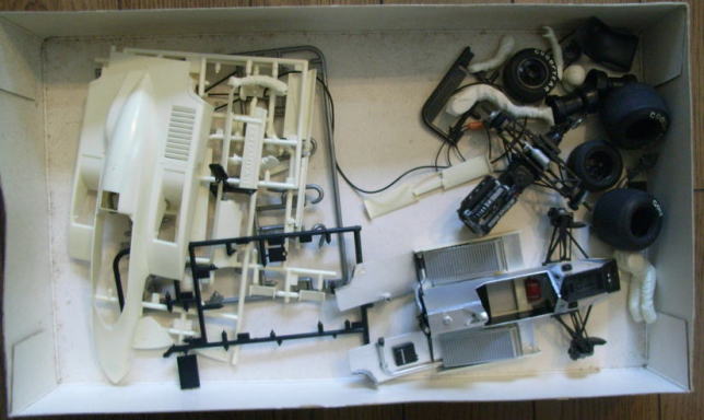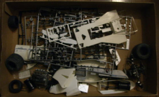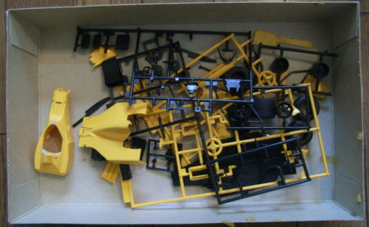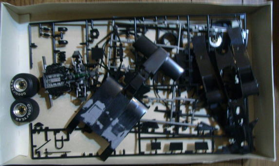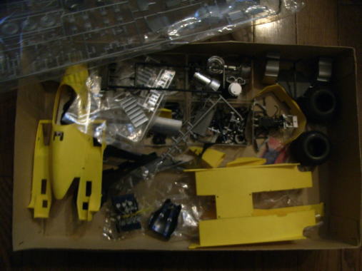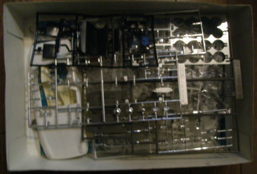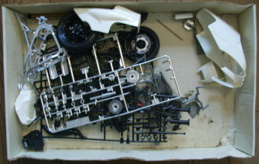この作品もまたシャーシは完成しているが、ボディはまだ組まれておらず、塗装もされていない。クリアーパーツも今回は持ち帰っていない。同様に箱があってその中にデカールと一緒に入っているのであろう。