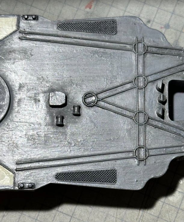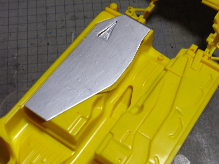 ついでに下部もプラバンで補強。後部のパーツも同様に補強した。