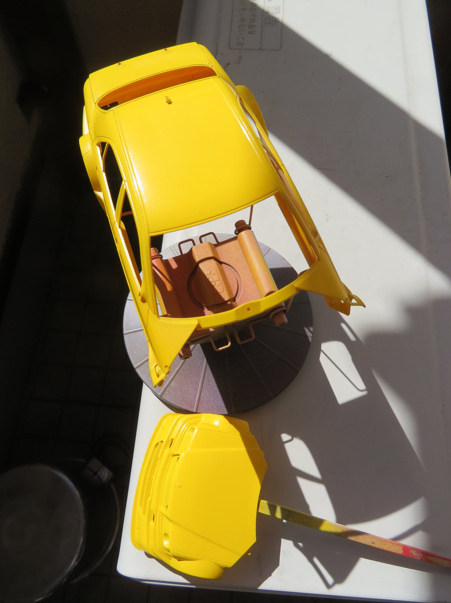 ドライバーフィギュアは、加熱によって足の形をヒール&トーに改造してあった。故人の遺志を引き継いで、フィギュアを乗せて完成させることにした。