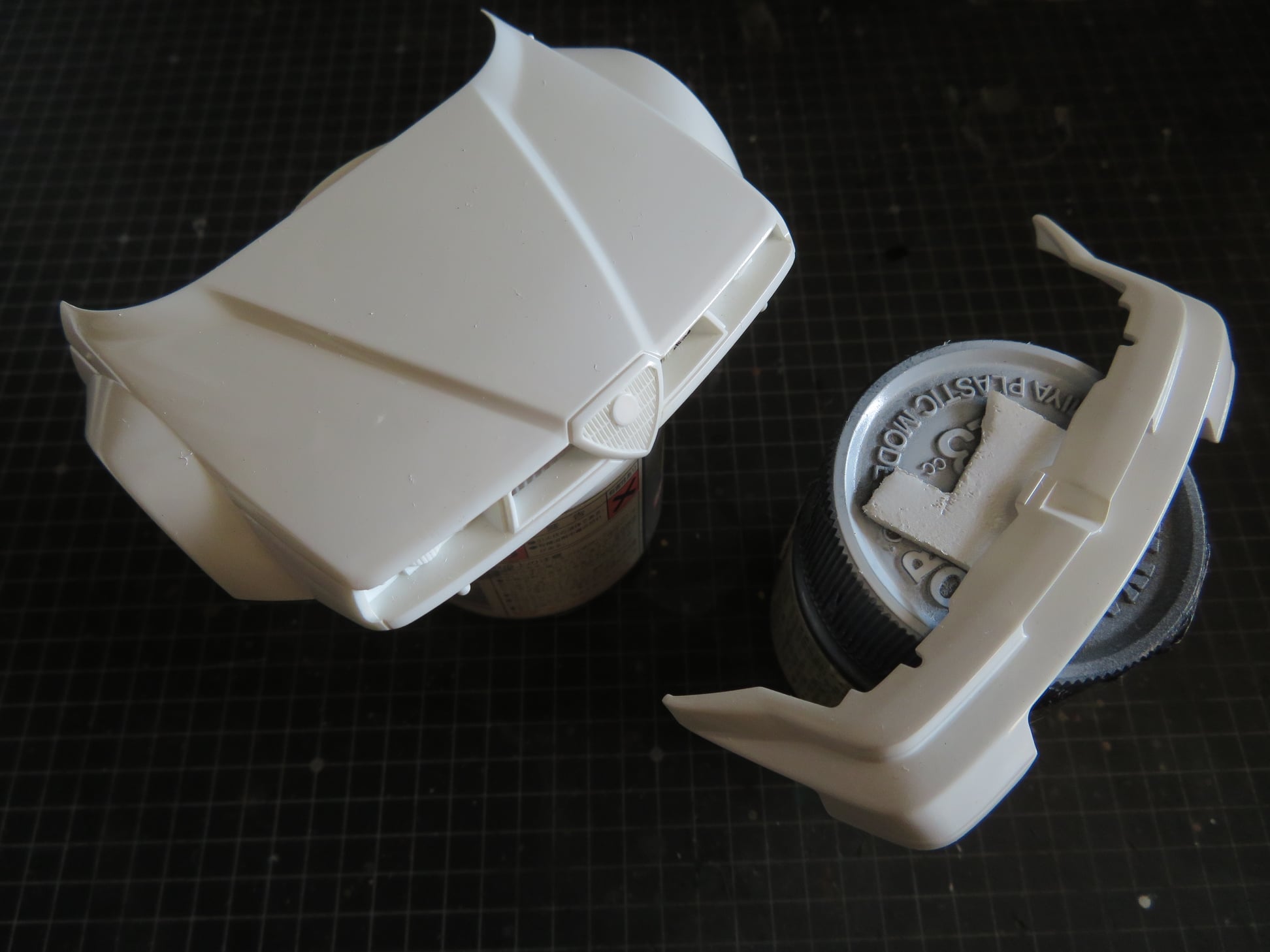 タミヤの缶スプレーで塗装したとみられるが、塗料の攪拌が不足していたようで、塗装面がデコボコ。いわゆる「ゆず肌」とも若干違う荒れ方である。