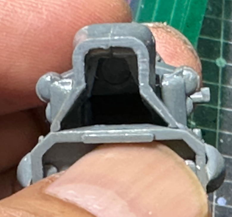 ドライバーズ・シートのシートベルトはモールドが削られて、ドライバーのフィギュアが他のキットから取り込まれていた。