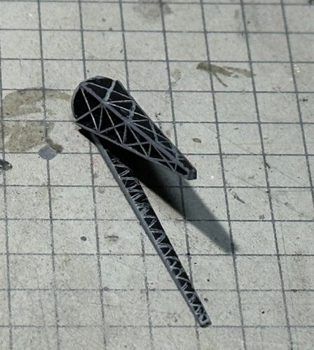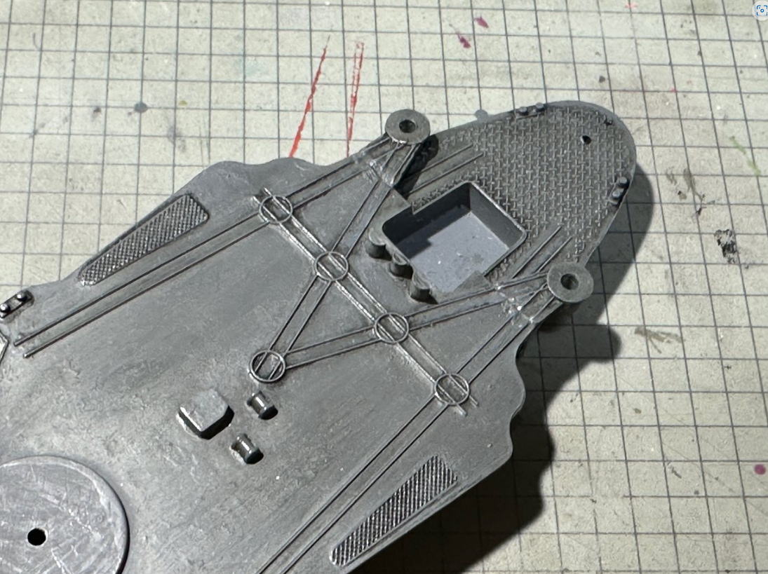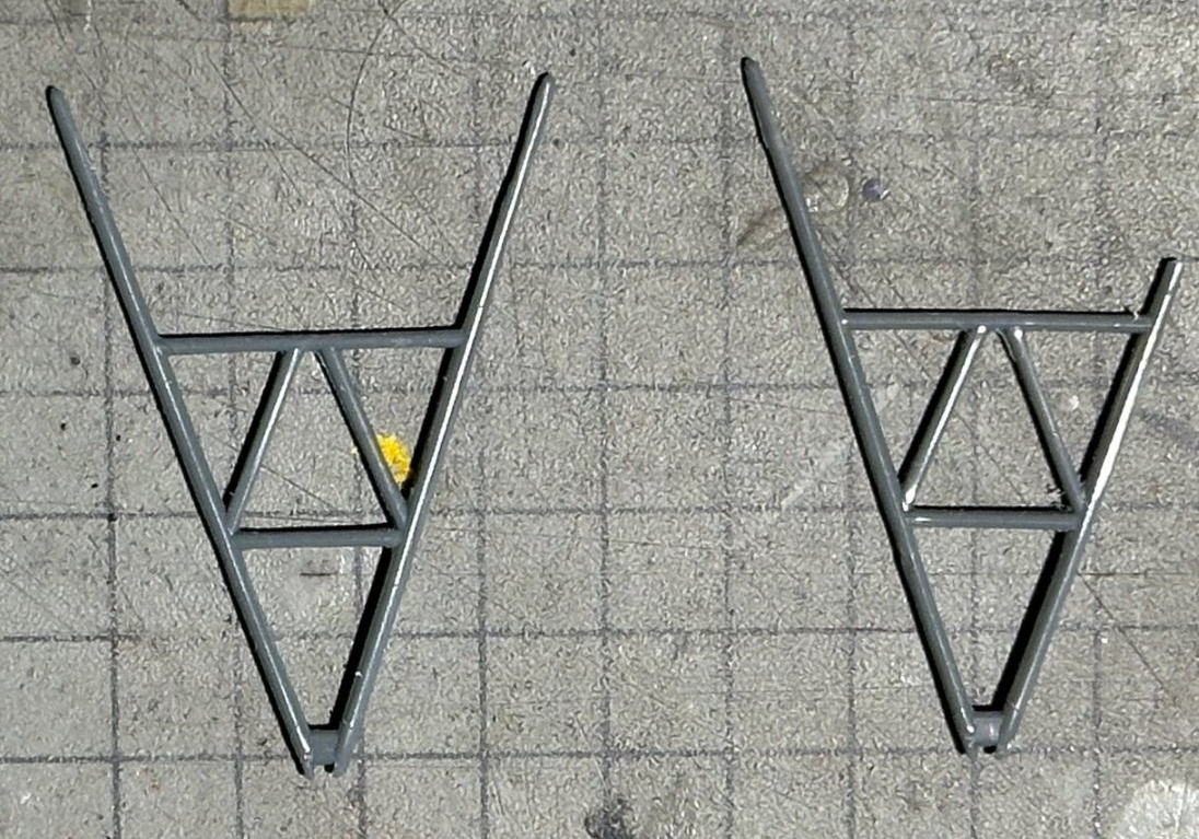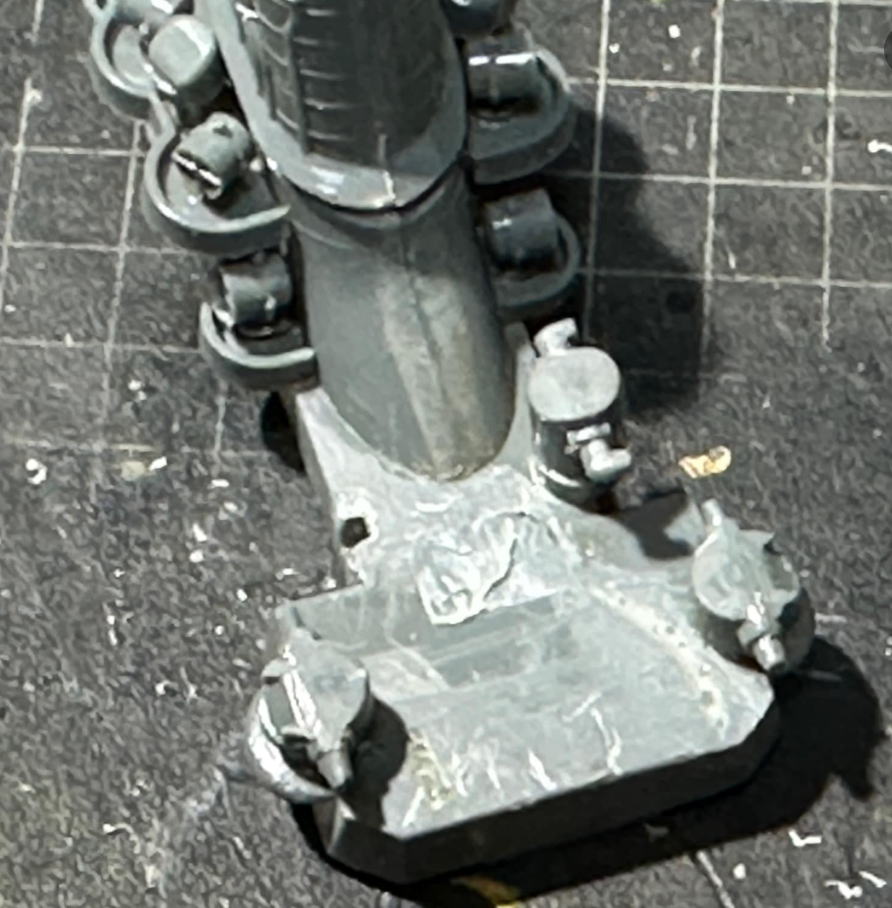キットの方位測定儀用空中戦のパーツは支柱の本数が違うため工作していたら、床に落ちて行方不明。ネットで調べたら3Dプリントパーツを売っていたので、購入しキットの取付穴も埋めた。