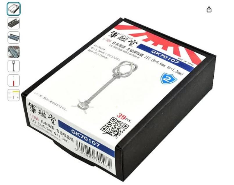 ウオーターラインシリーズ初期のキットである。その後リニューアルされて2025年現在では絶版。組み立て途中のキットと、(有)ピットロード東名が輸入販売していた、U.S.Aゴールドメダル製のエッチングパーツが箱に入っていた。