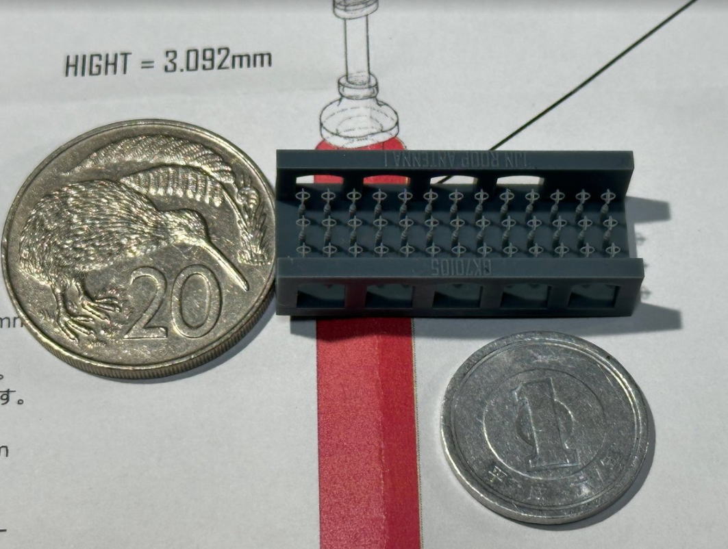 大方の工作が完了したので、購入した方位測定儀用アンテナを取り付けるが、、めちゃくちゃ小さくて、おまけによく飛ぶ。4個がどこかに飛んでった。1個は支柱が折れ6個目でようやく接着できたが、中心からずれてしまった。