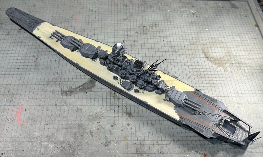 とりあえず甲板と主砲と副砲を塗装した
