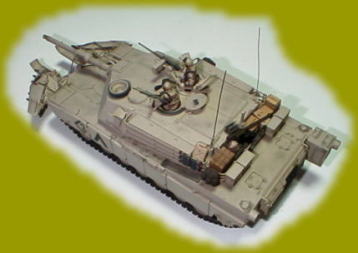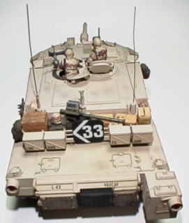 久々に気合いを入れて作成したAFV。と言っても完成は沖縄にいた時だから、1992年か3年頃かな。 マイン・プラウの部分に、金属パーツが使用してあり、感心した記憶がある。 戦車本体より、フギュアや、アクセサリーに気を遣って完成させた。タミヤ標準の作りやすいキット。 自分でもAFVの中では、気に入ってる作品である。