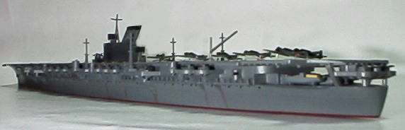 やっぱり航空母艦は大きい。これは初めて完成させたWLの空母である。大きさの割に構造物が無いので組み立ては楽であった。 タミヤの製品と言う事もあるが。時間がかかったのは、むしろ塗装部分である。 しかし、このフネは殆ど活躍せず沈没してしまったので、あまり人気がないのだろうか。よく分からないけど。